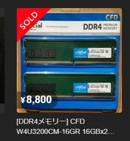 経験上、メモリーの使用率が50%以上になると、まともにPC君が動いてくれないので、さらに32GBメモリーを足そうと、中古品を探したんだけど。