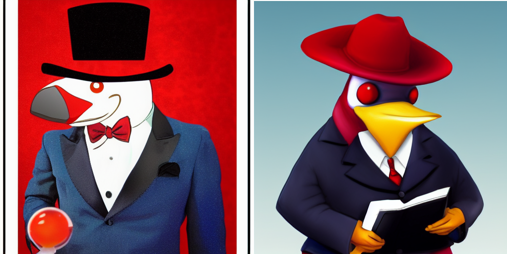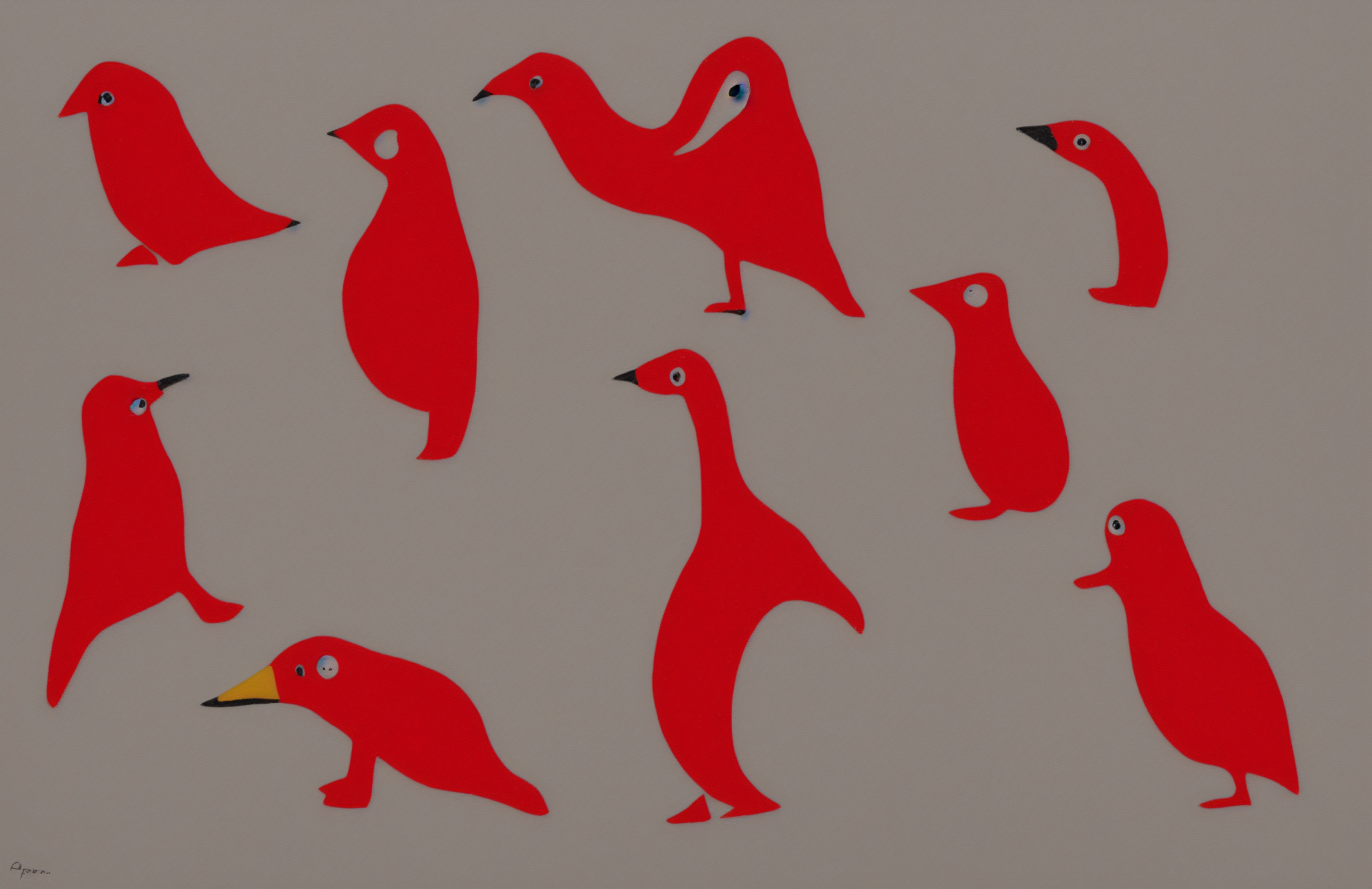 トップ画「red penguin」で指令したら描き上がった絵です。なんか、子供が書いた絵みたい(笑)