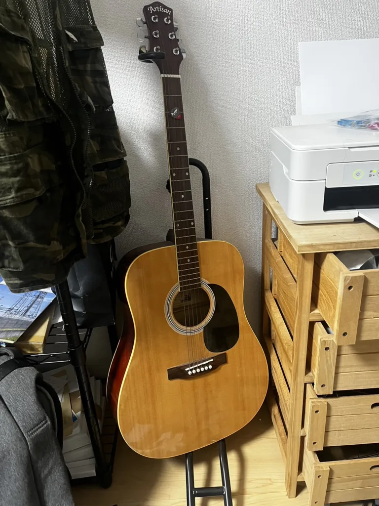 ギター、かなりまえに買ったけど、ぜんぜん弾いてない(笑) 弾けるとおもったけど、弾けなかった(笑) チューナー落として壊して、いま飾りと化してる(笑)(笑)