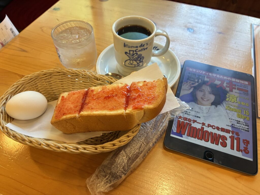 今日は、ドトールではなく。コメダコーヒーでモーニング🍞🍞☕️ ゆで卵 美味しい。
